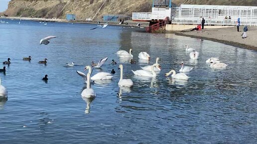 Лебеди, зимующие у берегов Анапы