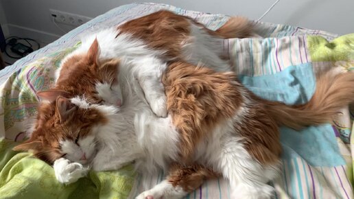 Милые котики спят в обнимку!