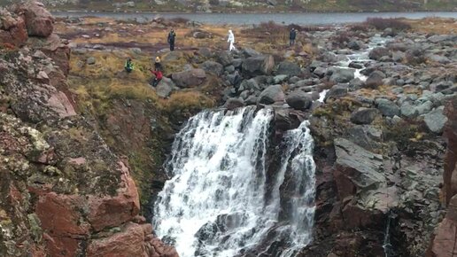 Батарейский водопад в Териберке впадает в Северный-Ледовитый океан