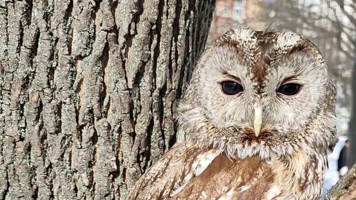 Сова на дереве городского парка. Очень красиво подснял.