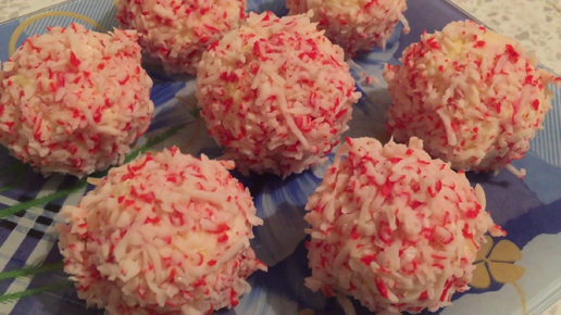 Новогодняя закуска сырно-крабовое рафаэлло закуска из крабовых палочек рецепты на Новый год