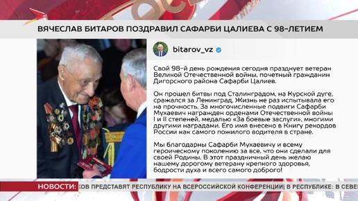 Вячеслав Битаров поздравил Сафарби Цалиева с 98-летием