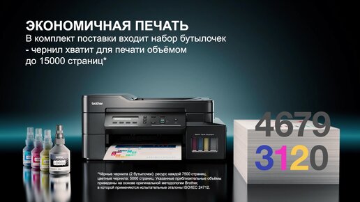 Цветное струйное МФУ Brother DCP-T820W с СНПЧ для яркой печати каждый день