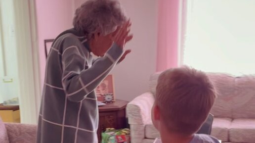 102-летняя бабушка присоединилась к уроку физкультуры правнука и стала популярной