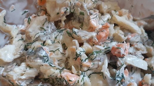 Салат "Раковые шейки" из минтая готовлю за сутки до подачи к столу