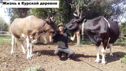 адаптация коров друг к другу//соединил коров в одно стадо//Марфа и брусня на пастбище