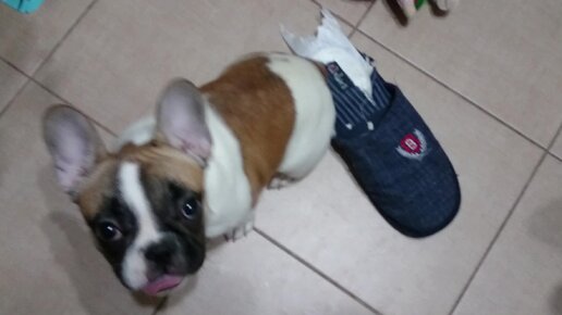 Маленький щенок французского бульдога ОПЯТЬ СЪЕЛ мой тапок!