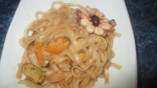 Лапша удон с морепродуктами и моим секретным соусом. Готовится за 10 минут. Проверяйте.