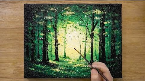 Как нарисовать красивый лес. Простая техника акриловой живописи.