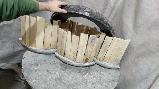 С помощью Автомобильных покрышек, из деревянного ящика и цемента.