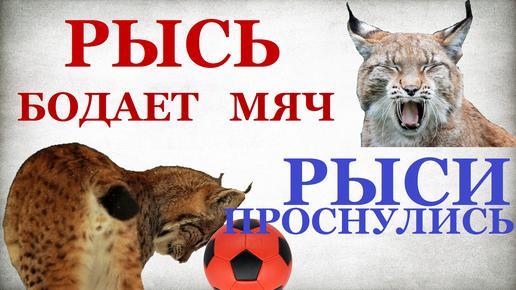 Рыси проснулись,все в дом,рысь бодает мяч.