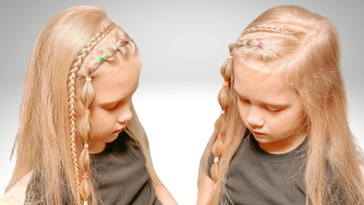 Прическа с цветными резинками на распущенных волосах