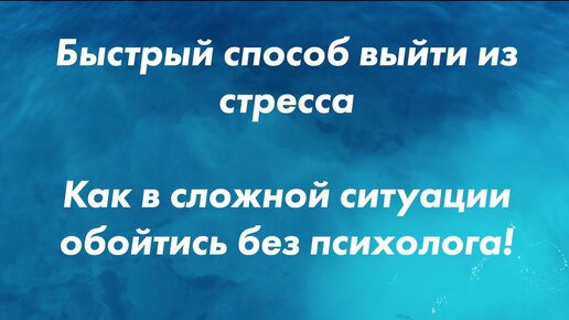 Быстрый способ выйти из стресса. Как в сложной ситуации обойтись без психолога!