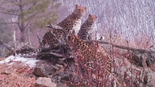 Фотоловушка в Приморье поймала семейство леопардов — маму и двух ее котят