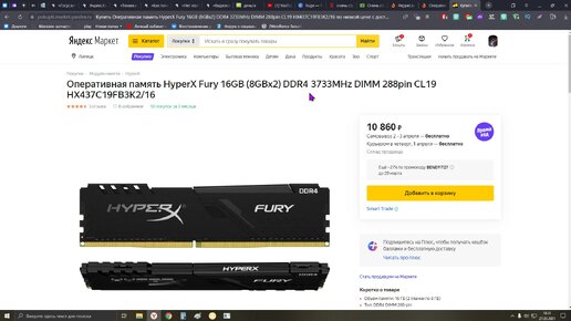 3733 Mhz 16 гигов - HyperX оперативная память по скидке 27% на маркете. Отличная память по привлекательной цене