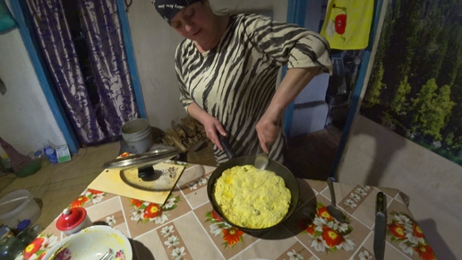 Жаренные яица с творогом в сковороде.