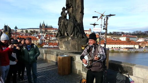 Посмотрите на уличного музыканта из Праги. Как круто играет на самодельных инструментах