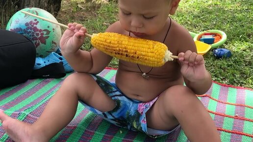 В Таиланде маленький ребёнок не будет голодный! Аппетитная кукуруза на пляже всегда идёт на ура 🌽