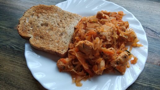 Капуста тушеная с индейкой на скорую руку. Диетический ужин.