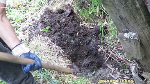 Под первый столб копаю ямку. Ломаю старый забор. Строю новый забор. День 2. Часть 2.