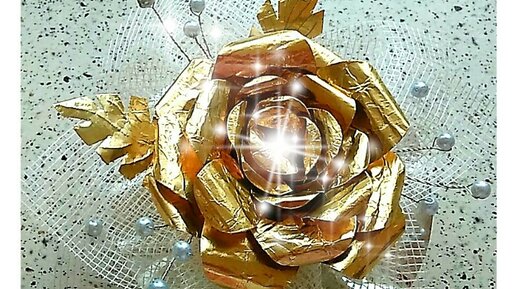 Золотая роза из фольги.