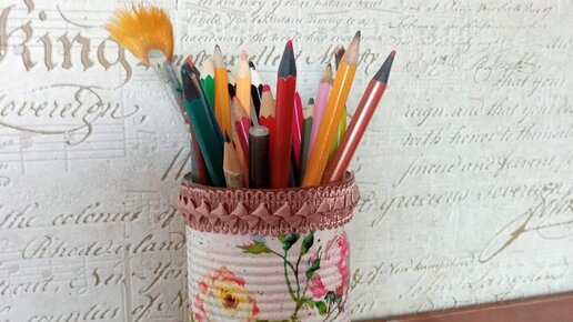 Карандашница или кашпо из жестяной банки