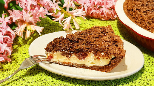 Шоколадный пирог с творогом и вишней. Простая выпечка к чаю.