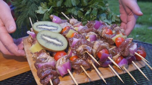 Покажу необычный маринад с киви. Шашлык из говядины на мангале. Рецепт.