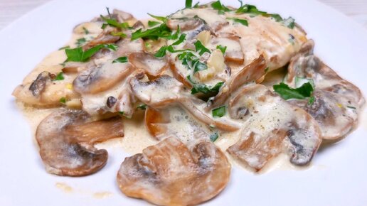 Куриная грудка с грибами в сливочном соусе. Ужин на сковороде.