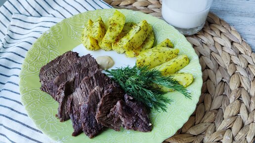 Конина, запеченная в духовке, с картошкой по-деревенски. Мясо и в тёплом и в холодном виде очень вкусное, мягкое.
