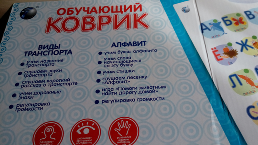 Показываю наш неудачный выбор коврика "Алфавит и транспорт"