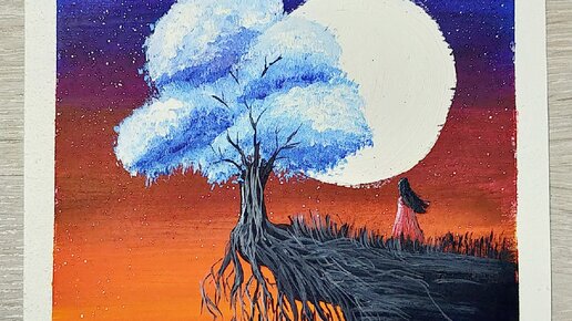 Рисуем гуашью используя простые приемы и получаем красивый сюжет. Рисование для начинающих.