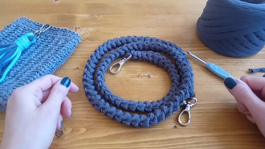 МК по вязанию из трикотажной пряжи. РЕМЕШОК для сумки!