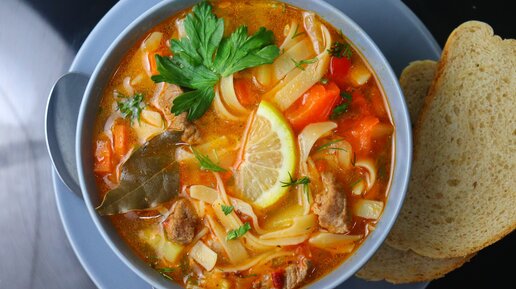 Ароматный суп лагман рецепт приготовления в домашних условиях. Готовить легкго и просто.
