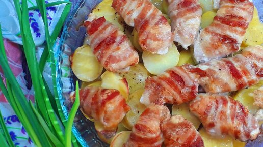 Куриное Филе Запечённое в Беконе с Картошкой. Получается Очень Нарядно, к тому же, Просто и Вкусно.