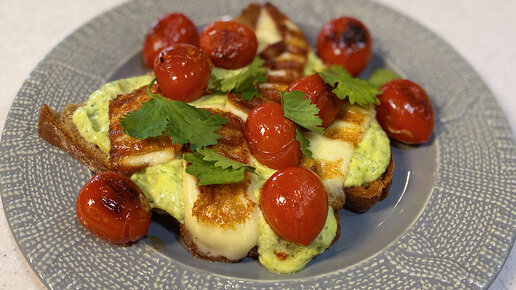 Бутерброд с соусом из авокадо, помидорами и сулугуни