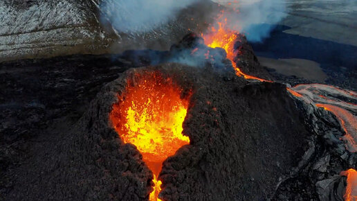 Фантастические кадры исландского вулкана, снятые с дрона