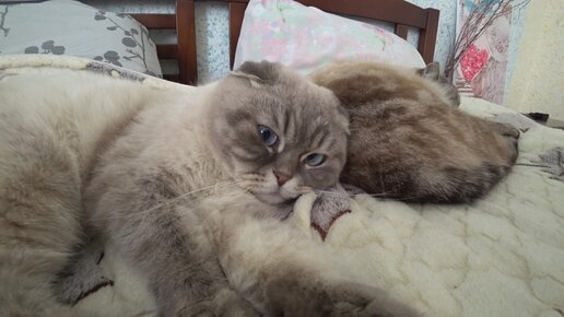 Котик Кевин решил прилечь отдохнуть со своей кошкой мамой