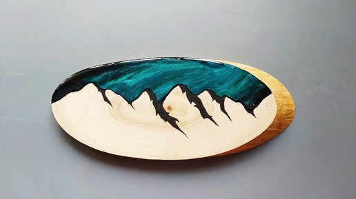 Сделала северное сияние над горами из эпоксидной смолы. Процесс создания.