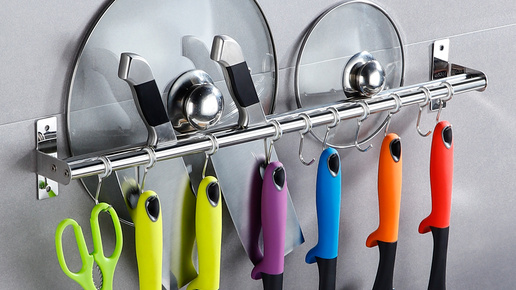 Установка рейлинга (держателя с крючками) из нержавейки на кухне или ванной комнате