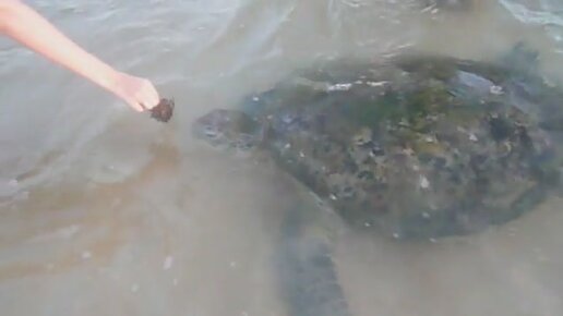 Черепашка кушает водоросли.