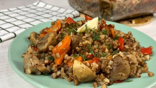 Гречка с грибами и овощами в духовке