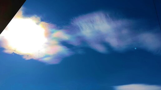 Сняла редкое оптическое явление . Иризация или радужные облака.