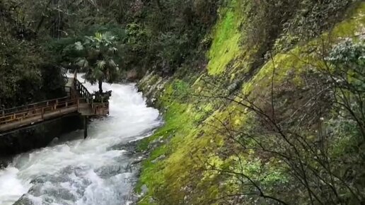 Красота скал, леса и горной реки в волшебном уголке Абхазии.