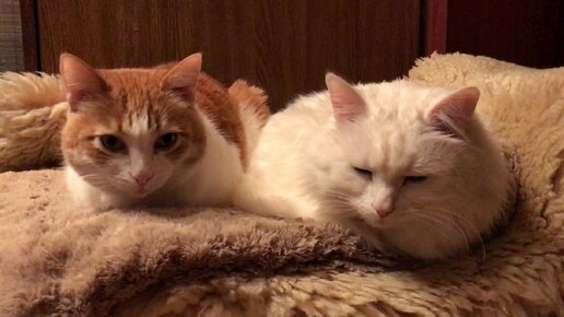 Кошечка и котик вместе сидят