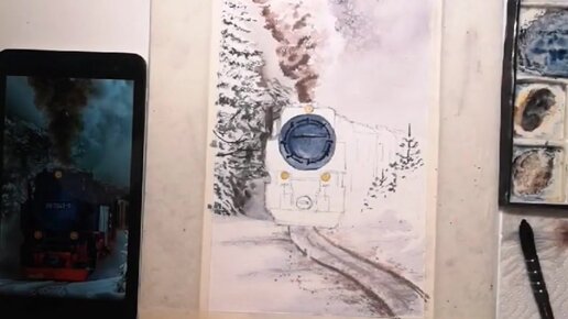 Мастер класс как нарисовать новогоднюю открытку. Волшебный поезд