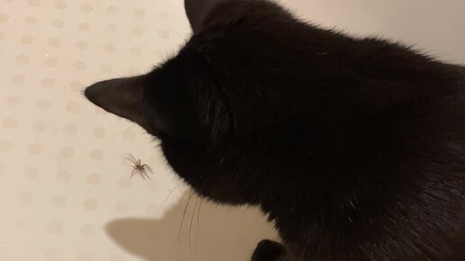 Попался ! Паук вернулся и кот быстро с ним расправился. Остались одни ножки