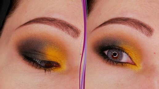 Желтый и черный макияж глаз в стиле смоки айс. Пошаговый урок