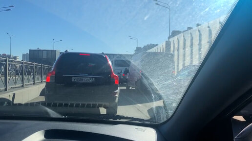 Пробка в несколько километров образовалась в Петербурге из-за ДТП