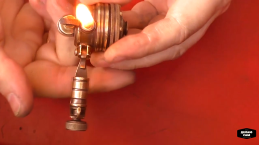Сделал необычную зажигалку в стиле стимпанк из нескольких латунных гаек и монетки. Результат порадовал